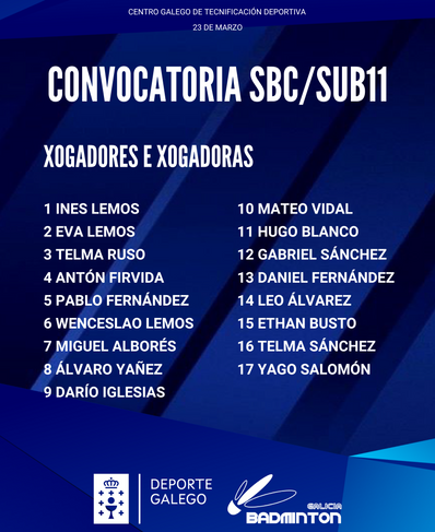 Deixámosvos a lista dos xogadores e xogadoras convocadas para dous novos adestramentos no Centro Galego de Tecnificación Deportiva que terán lugar os vindeiros 16 e 23 de marzo. Noraboa a todos! 🔥